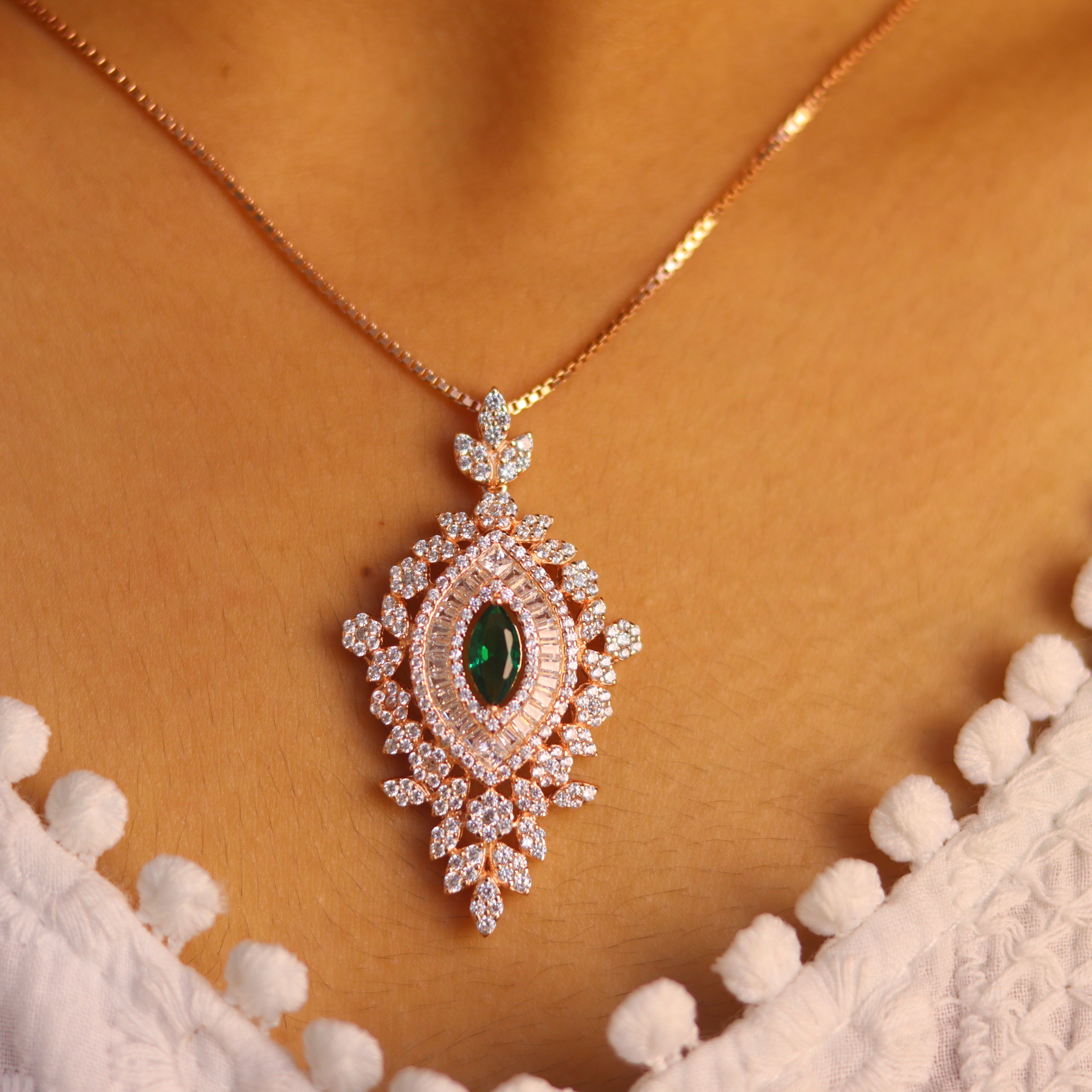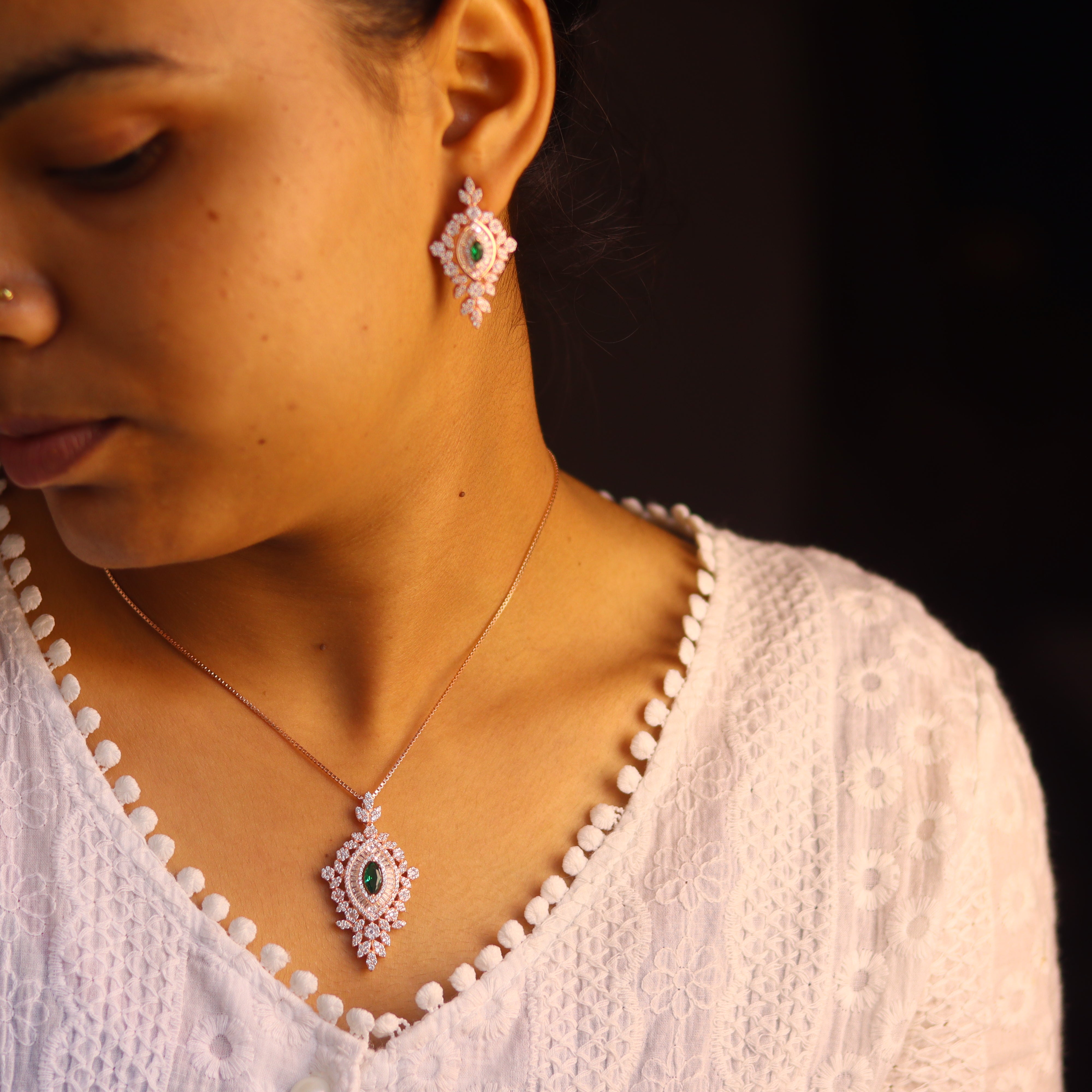 Elevate your elegance with the Astra Rose Gold Pendant Jewellery Set for Women from V ONE JEWELLERY. This stunning set is crafted from 925 Pure Silver and beautifully plated with rose gold, creating a radiant accessory that adds a touch of luxury to any special occasion. Perfect for celebrating life's memorable moments, this set combines charm and sophistication in every detail.