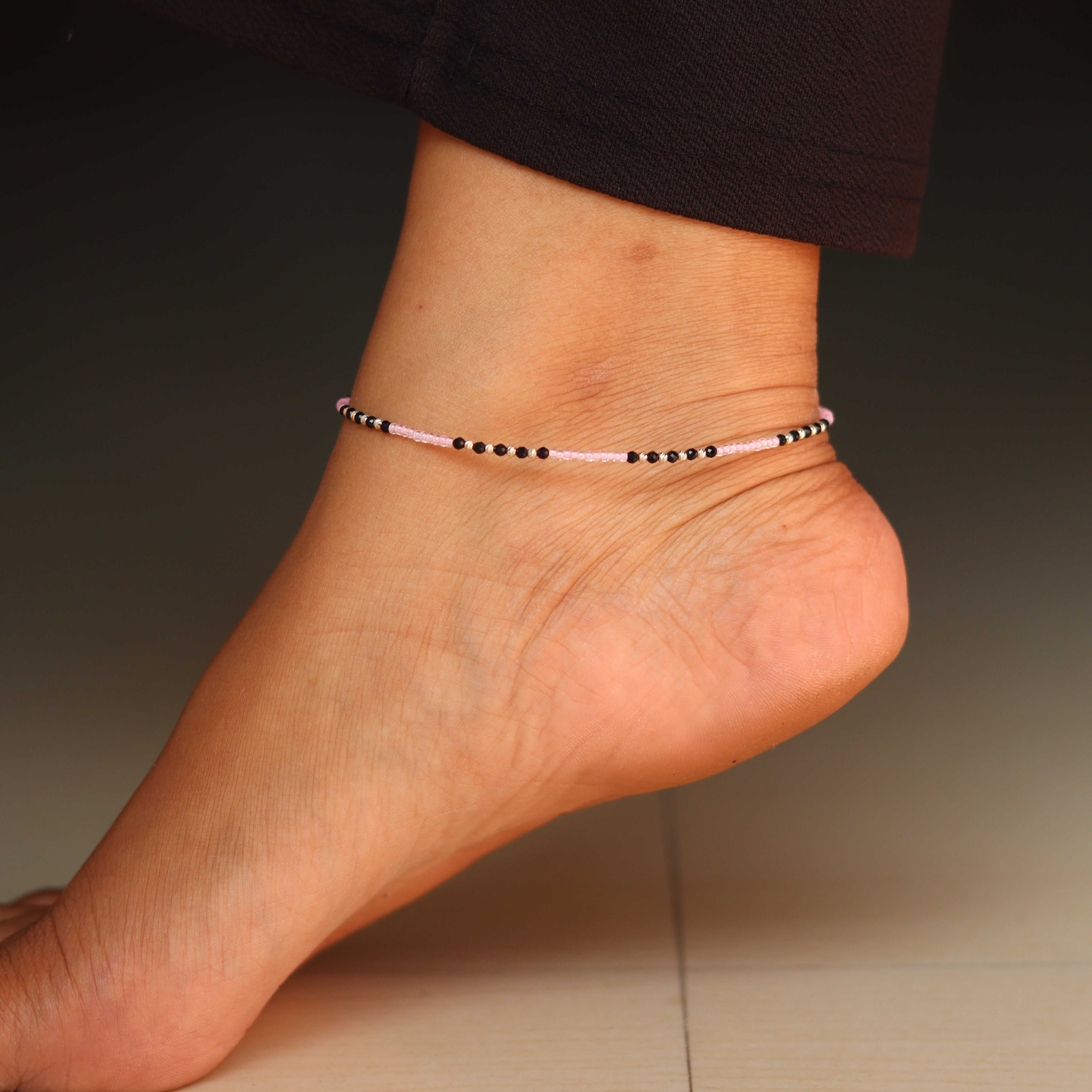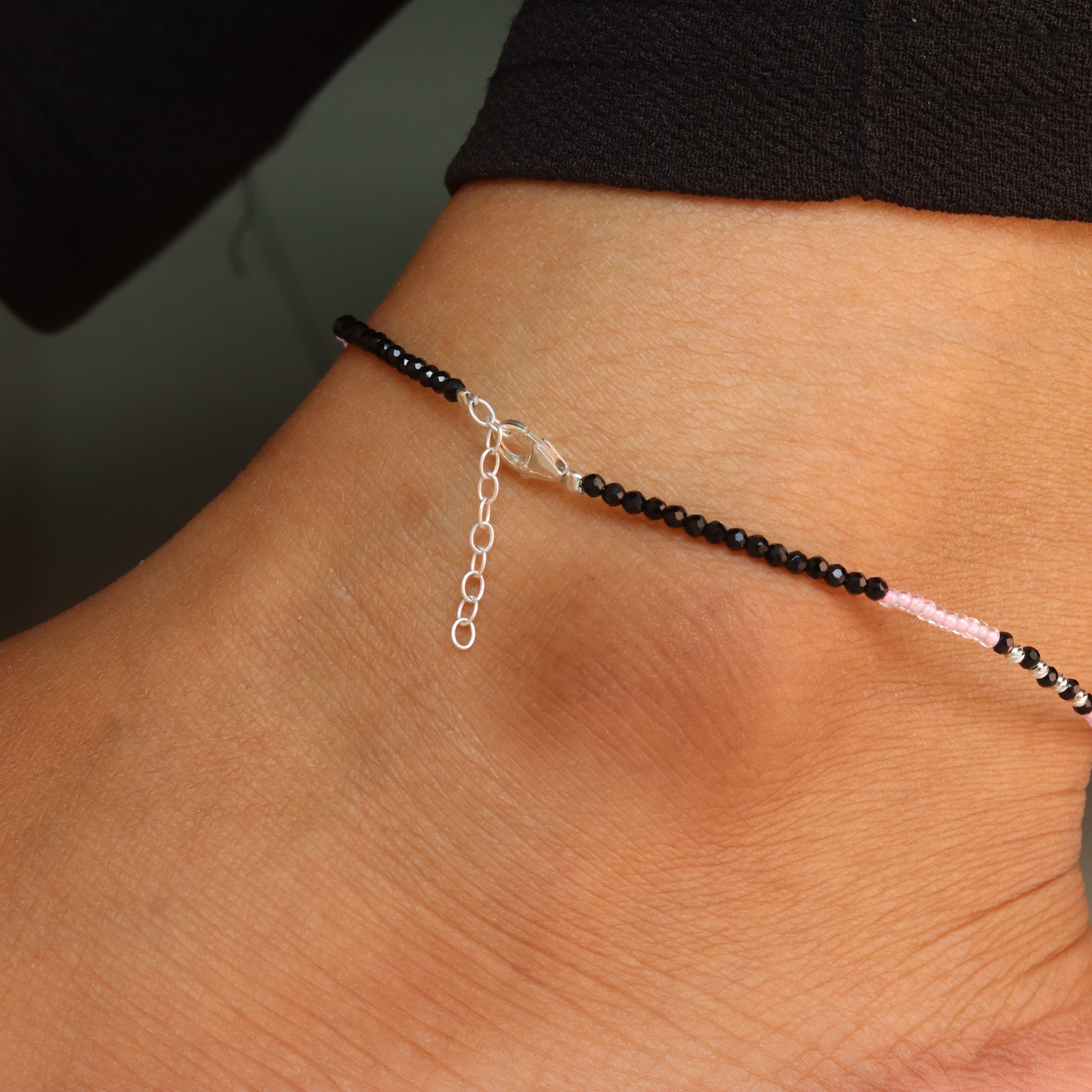 Black bead anklet with silver accents Payal