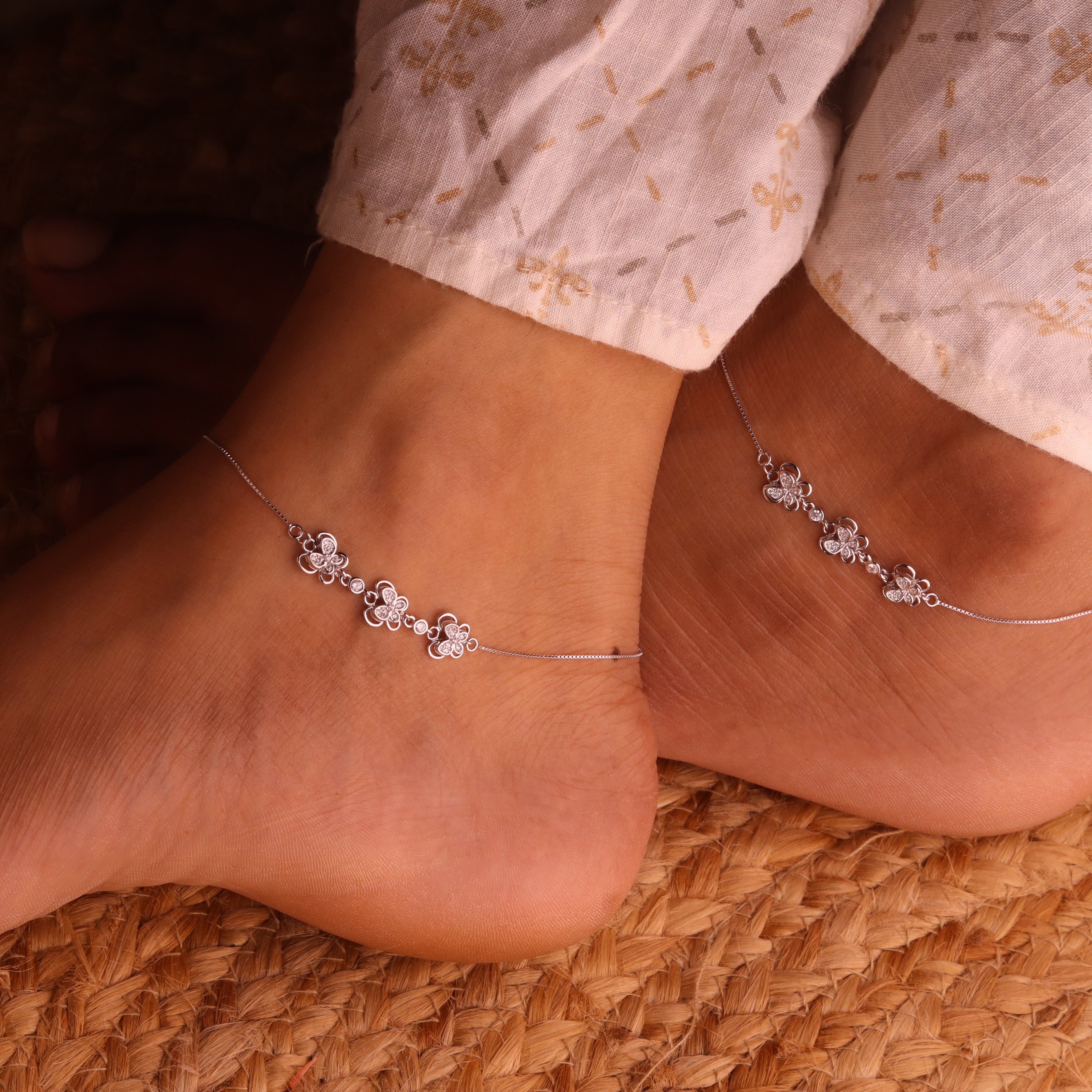 Embrace your style journey with our pure silver payal collection from V ONE JEWELLERY. Perfect for adding a touch of sophistication to any occasion, whether it's a casual outing or a stylish urban adventure.