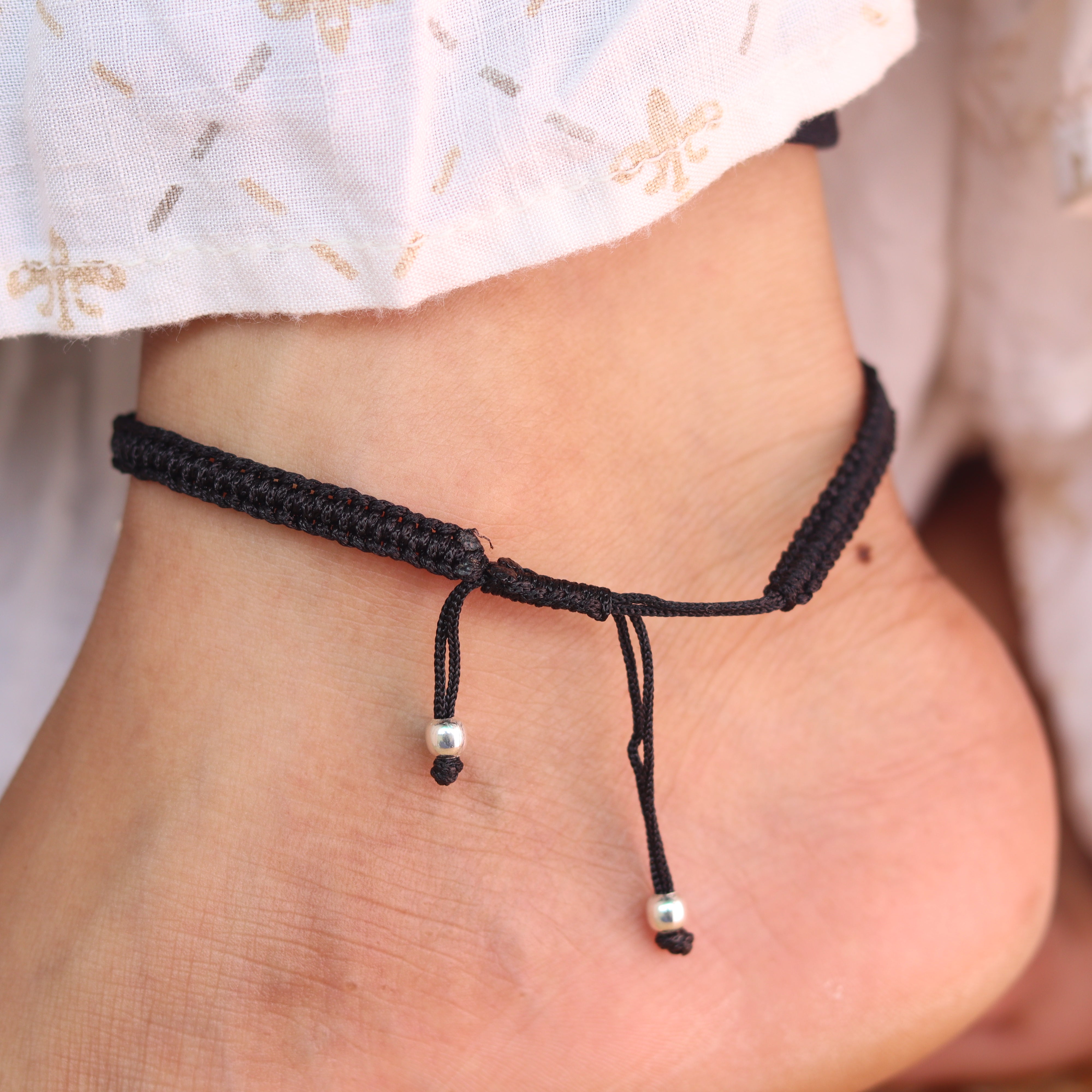 Step into effortless elegance with our fully adjustable thread payal from V ONE JEWELLERY. Designed for everyday comfort and timeless charm, this anklet blends the purity of silver with a versatile thread style—perfect for both casual wear and special occasions.