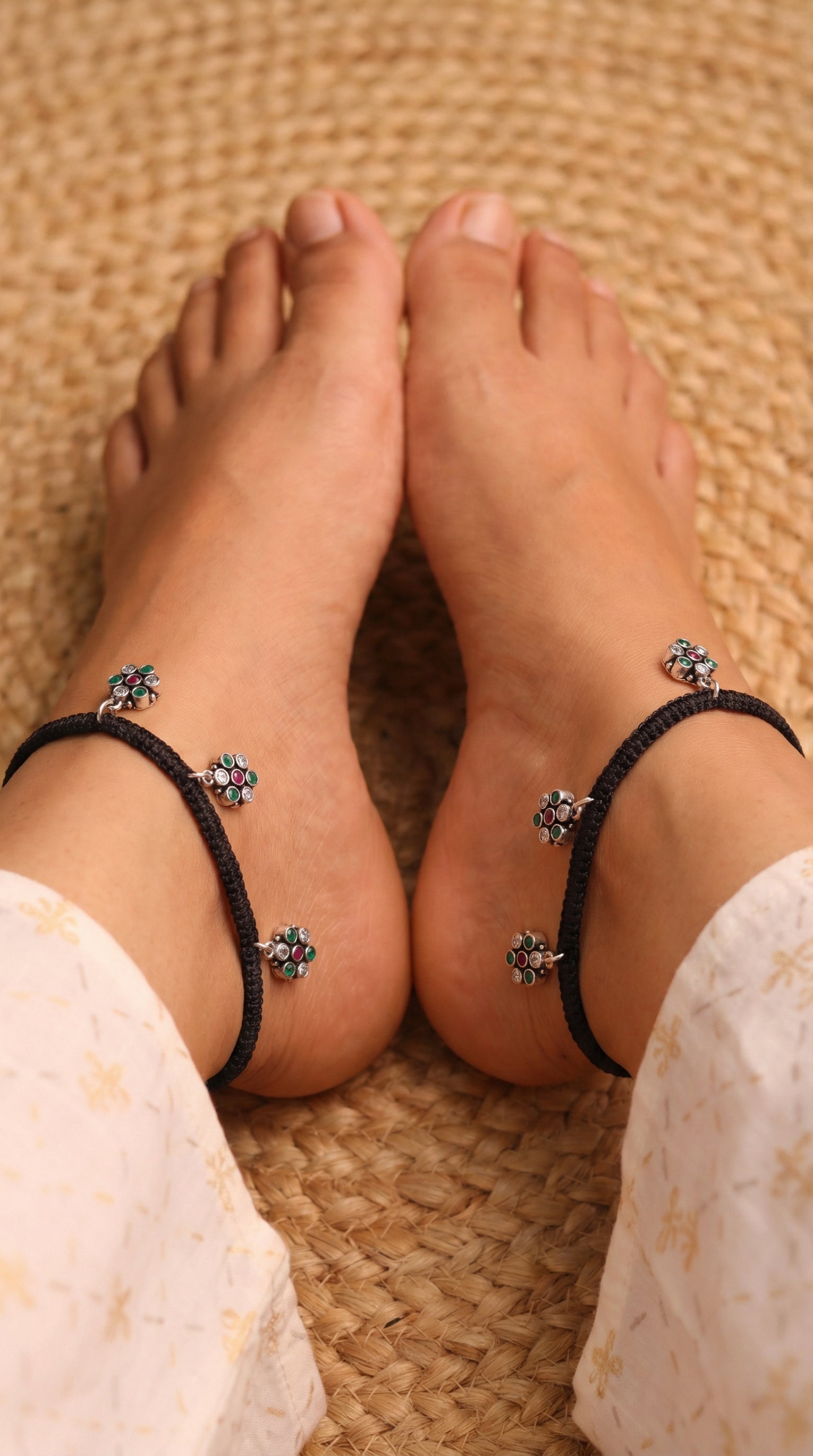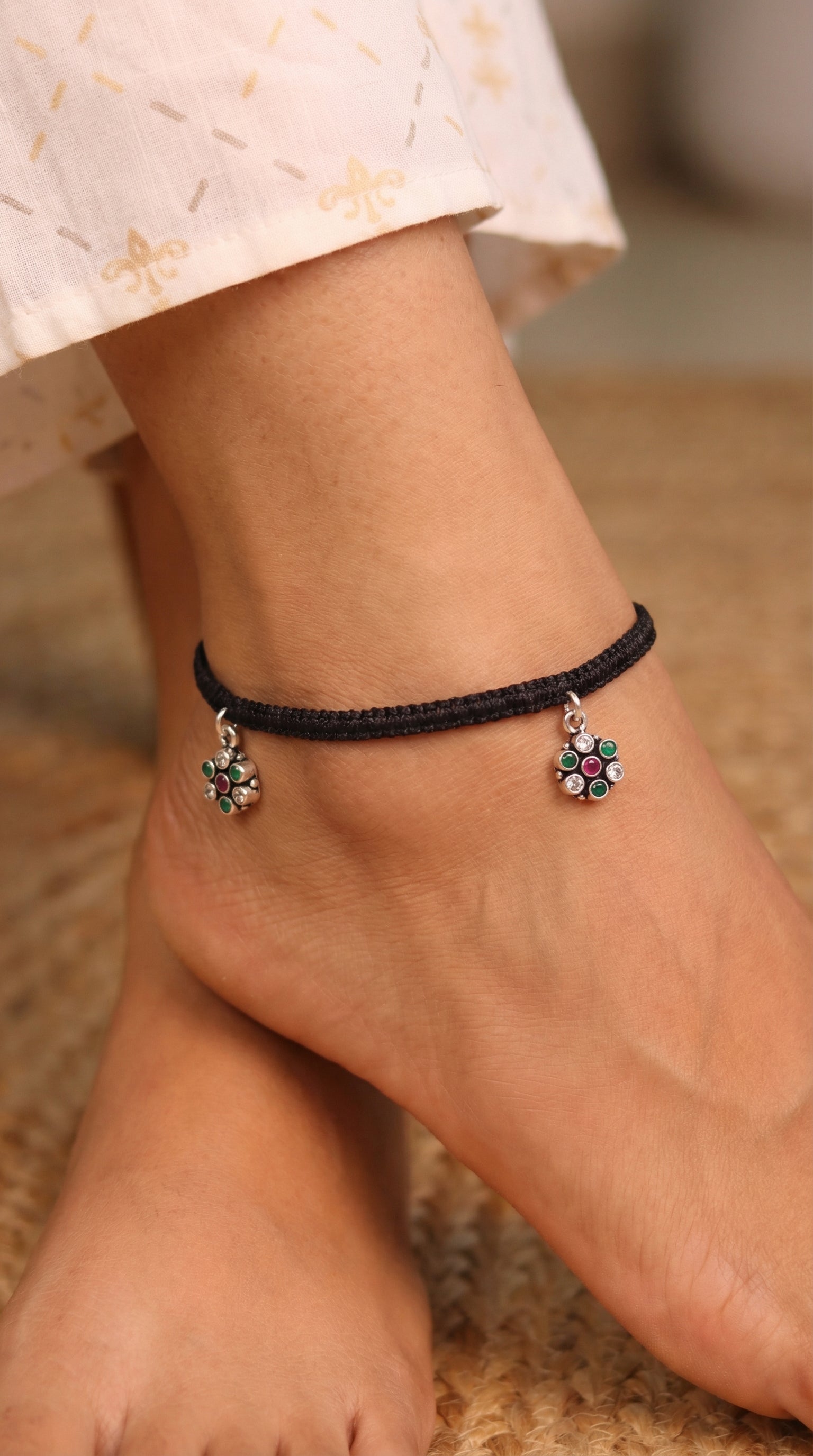 Step into effortless elegance with our fully adjustable thread payal from V ONE JEWELLERY. Designed for everyday comfort and timeless charm, this anklet blends the purity of silver with a versatile thread style—perfect for both casual wear and special occasions.