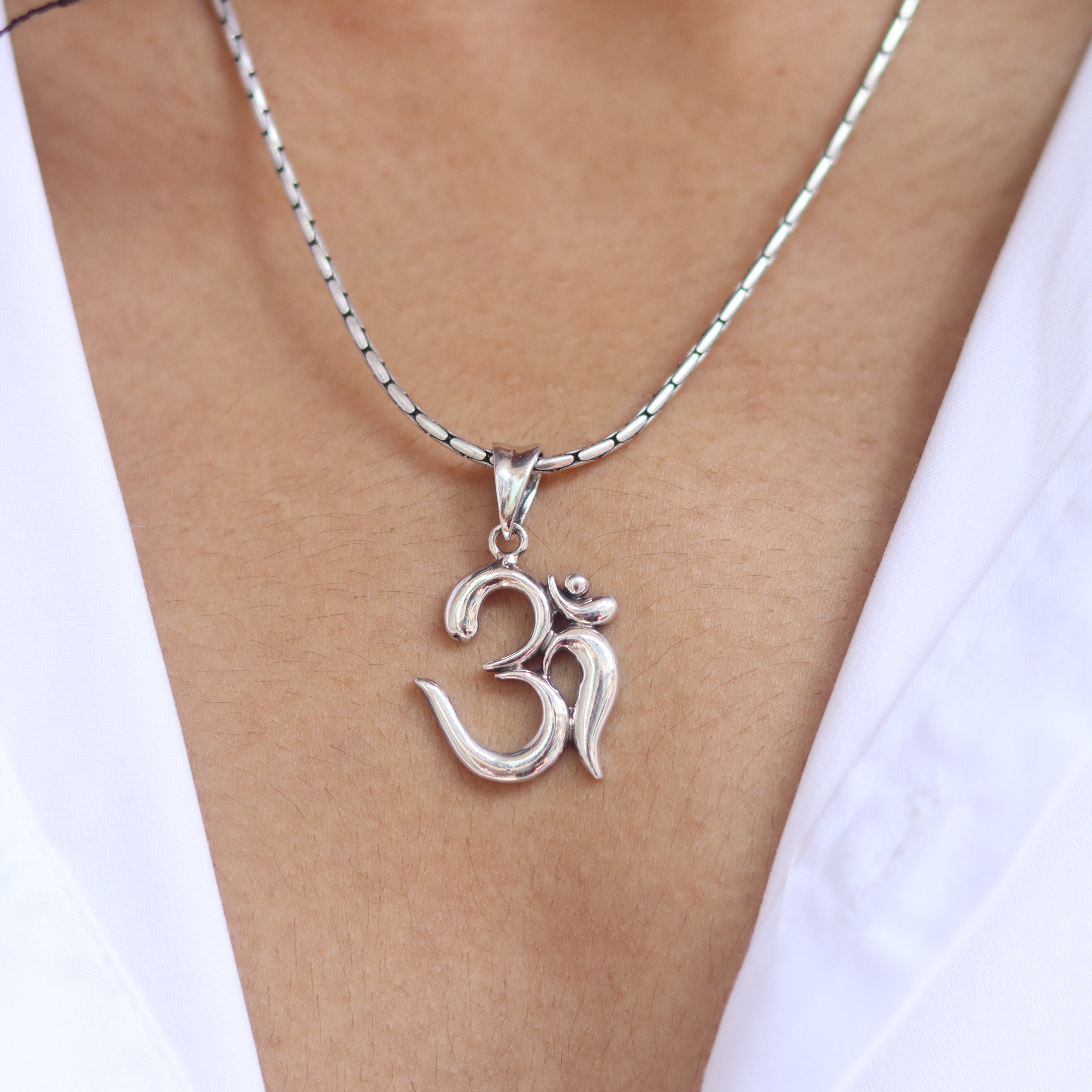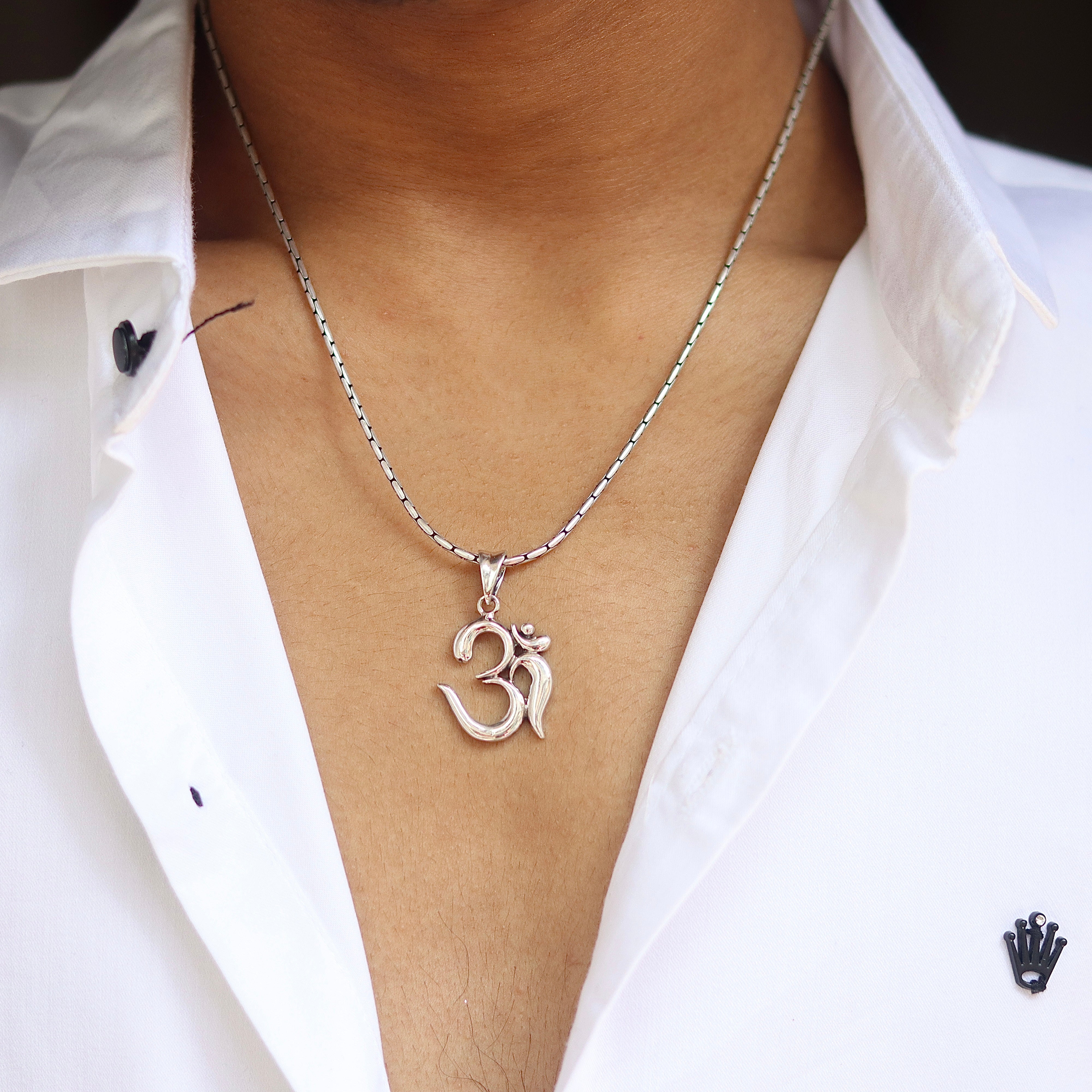 Discover timeless elegance with the Classic Om Symbol Silver Pendant. This simple yet profound pendant features the sacred Om symbol, embodying purity and spiritual significance. Crafted from 925 pure silver, it is available in two variants: with a matching silver chain or as a pendant only.