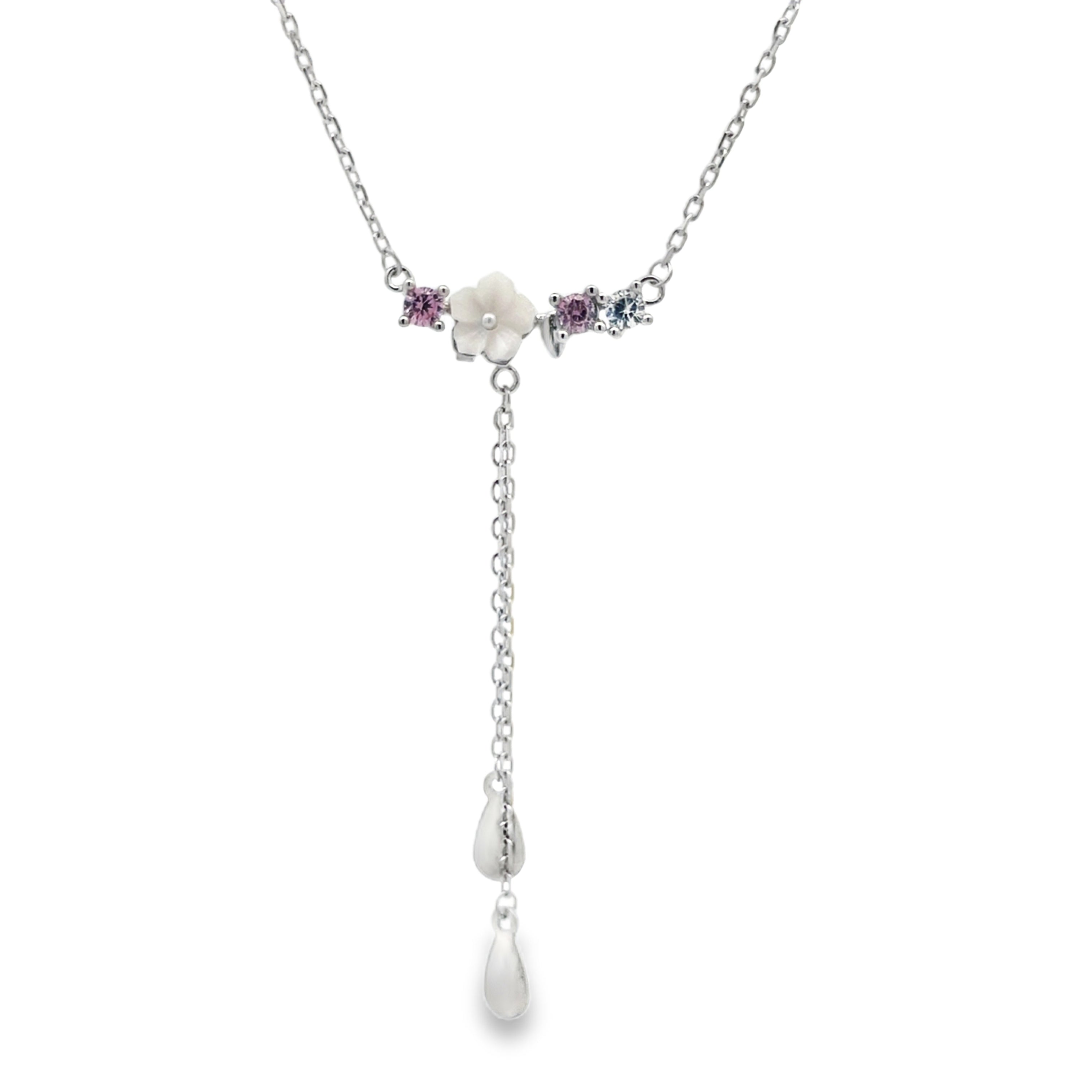 Diamond petal charm silver chain pendant