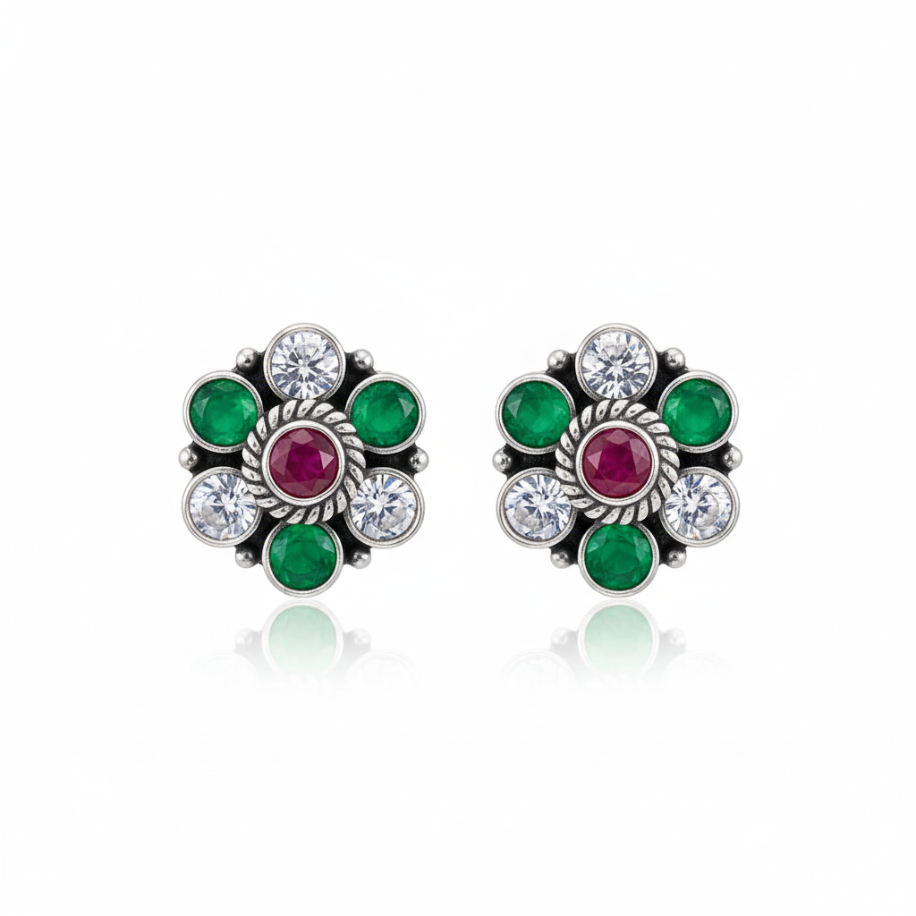 Green pop bloom silver stud