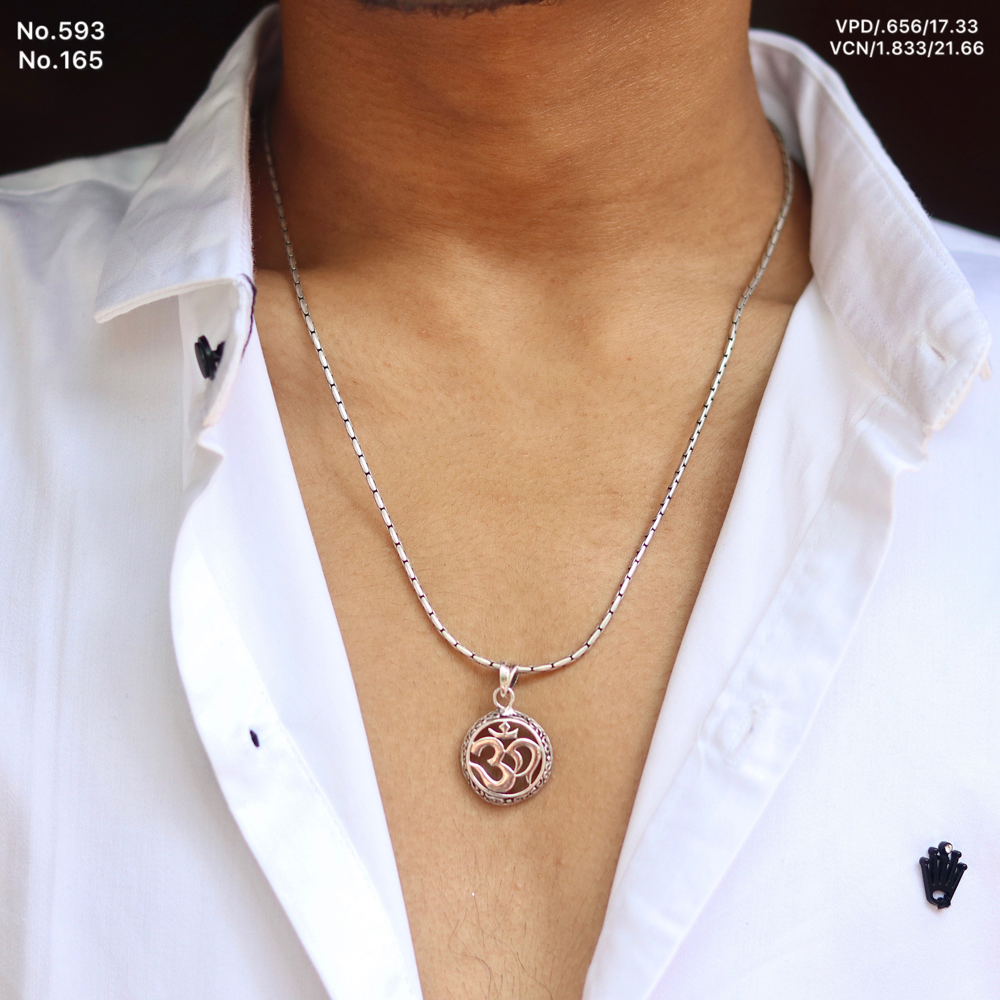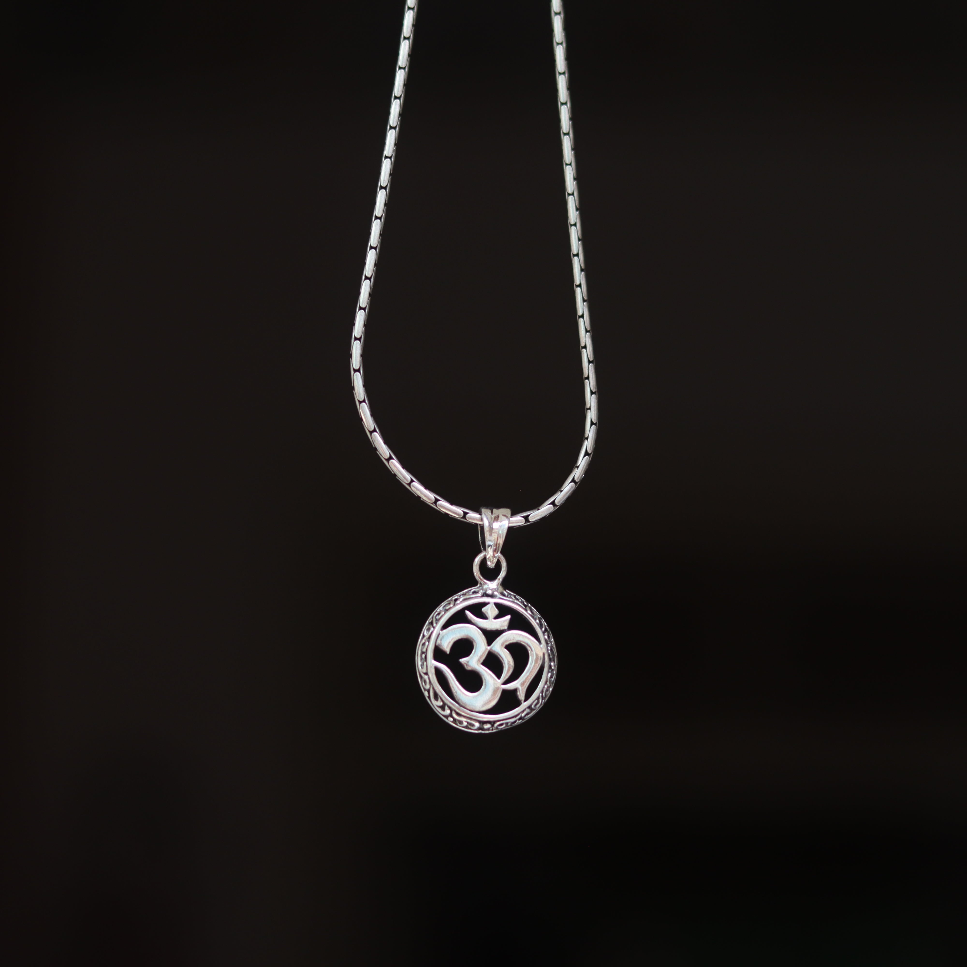 Embrace the serene elegance of the Om Aura Silver Pendant, a stunning piece that embodies the sacred Om symbol. This pendant features a striking round border that enhances its divine allure. Crafted from 925 pure silver, it is available in two variants: with a matching silver chain or as a pendant only.