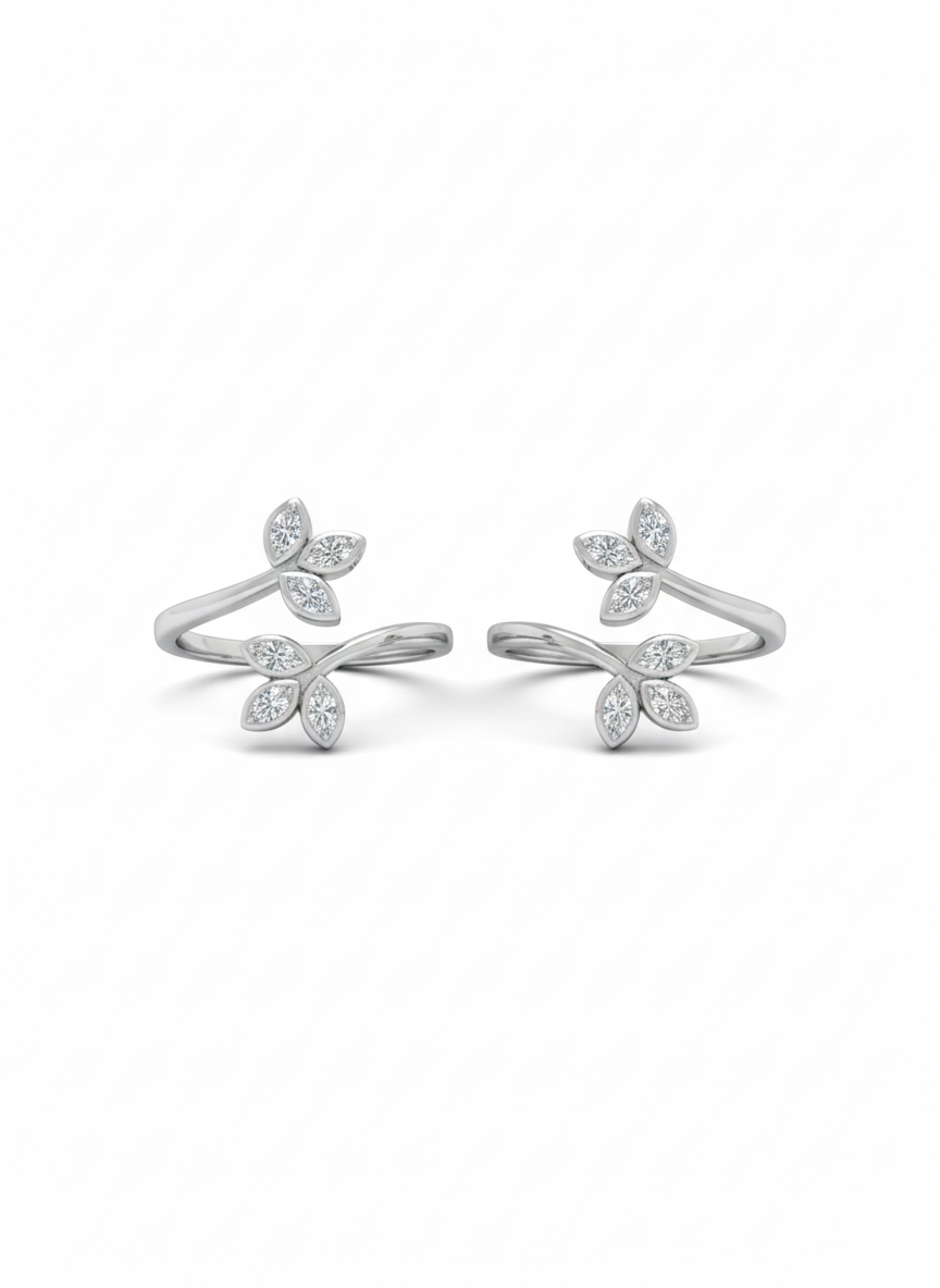 Royale trileaf silver toerings for women