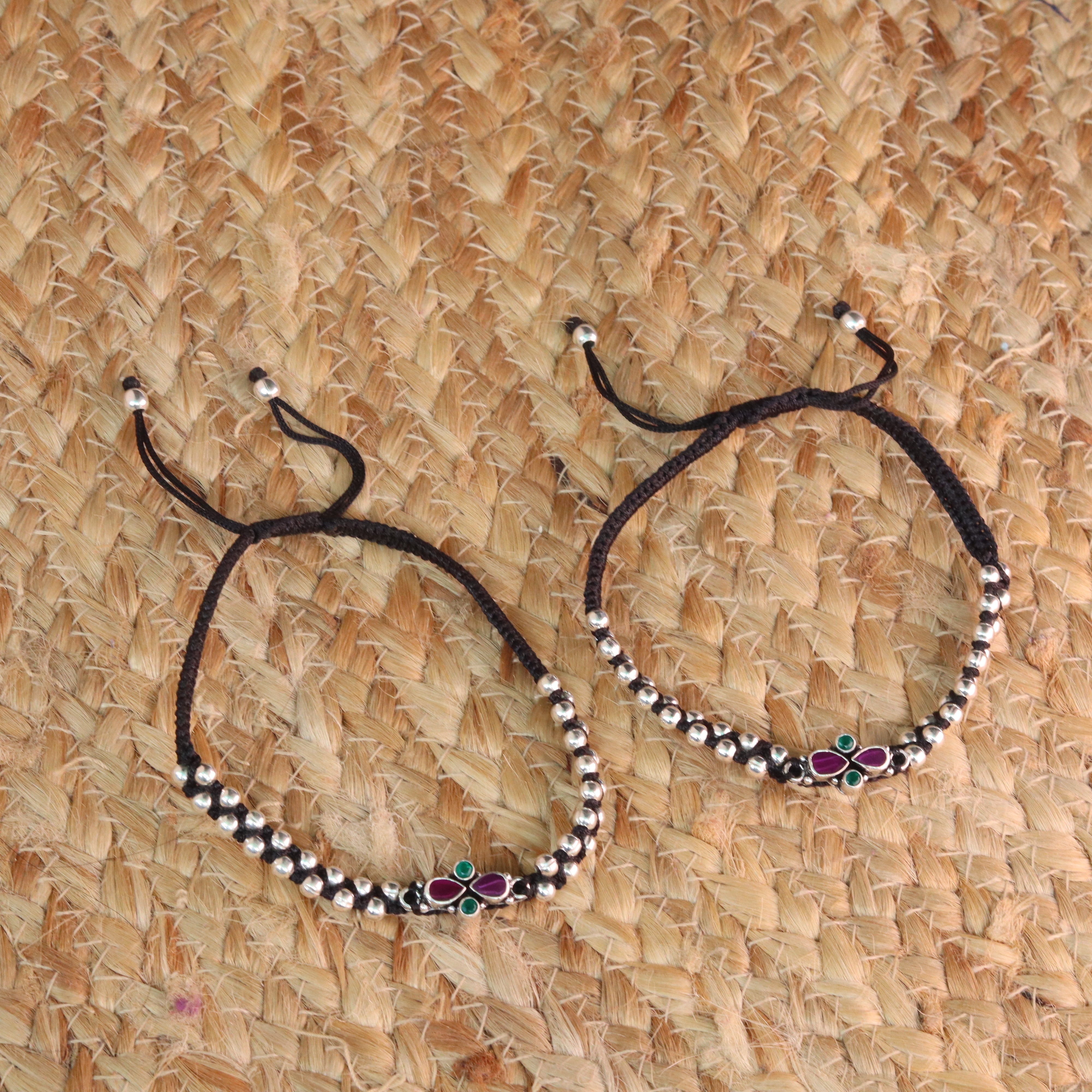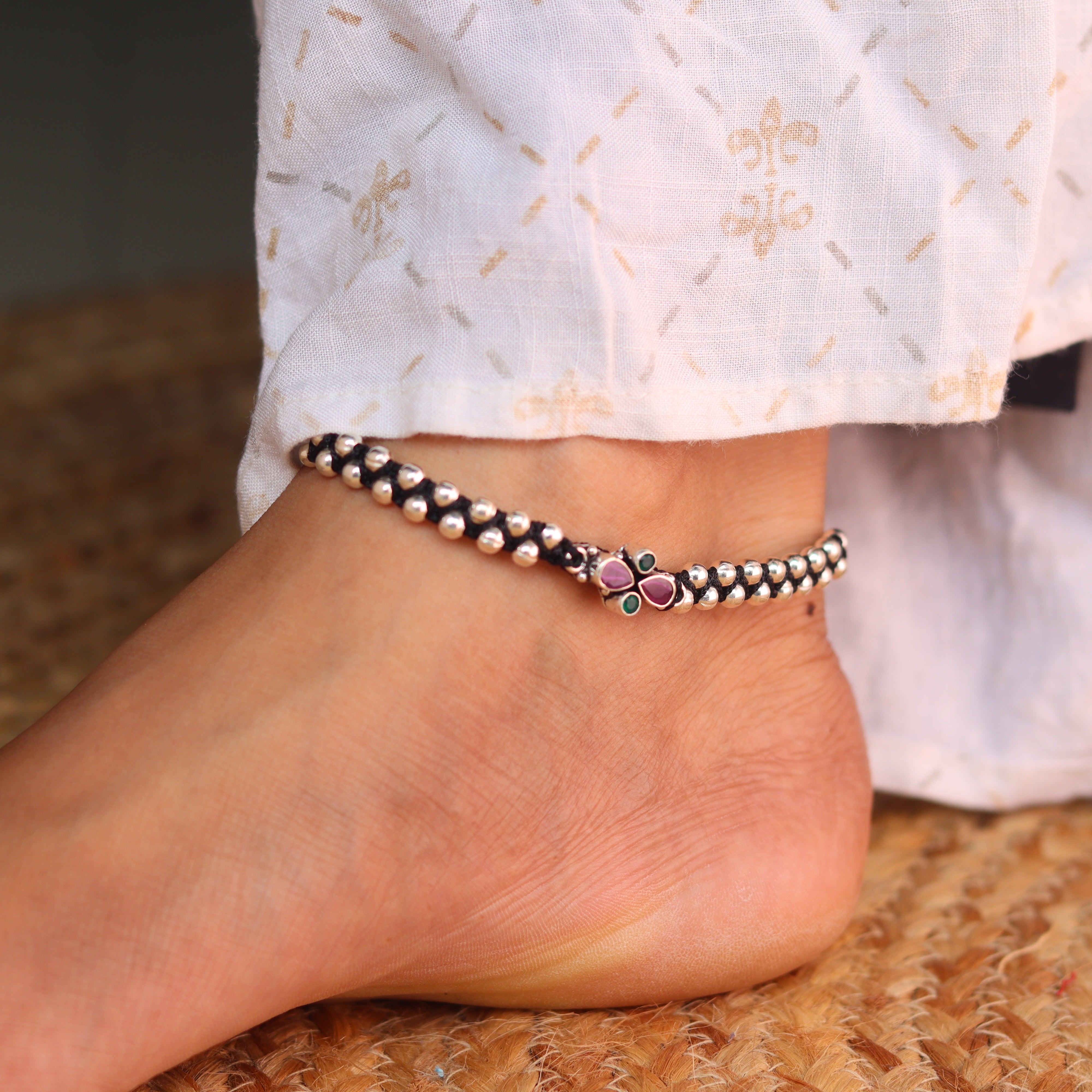 Step into effortless elegance with our fully adjustable thread payal from V ONE JEWELLERY. Designed for everyday comfort and timeless charm, this anklet blends the purity of silver with a versatile thread style—perfect for both casual wear and special occasions.