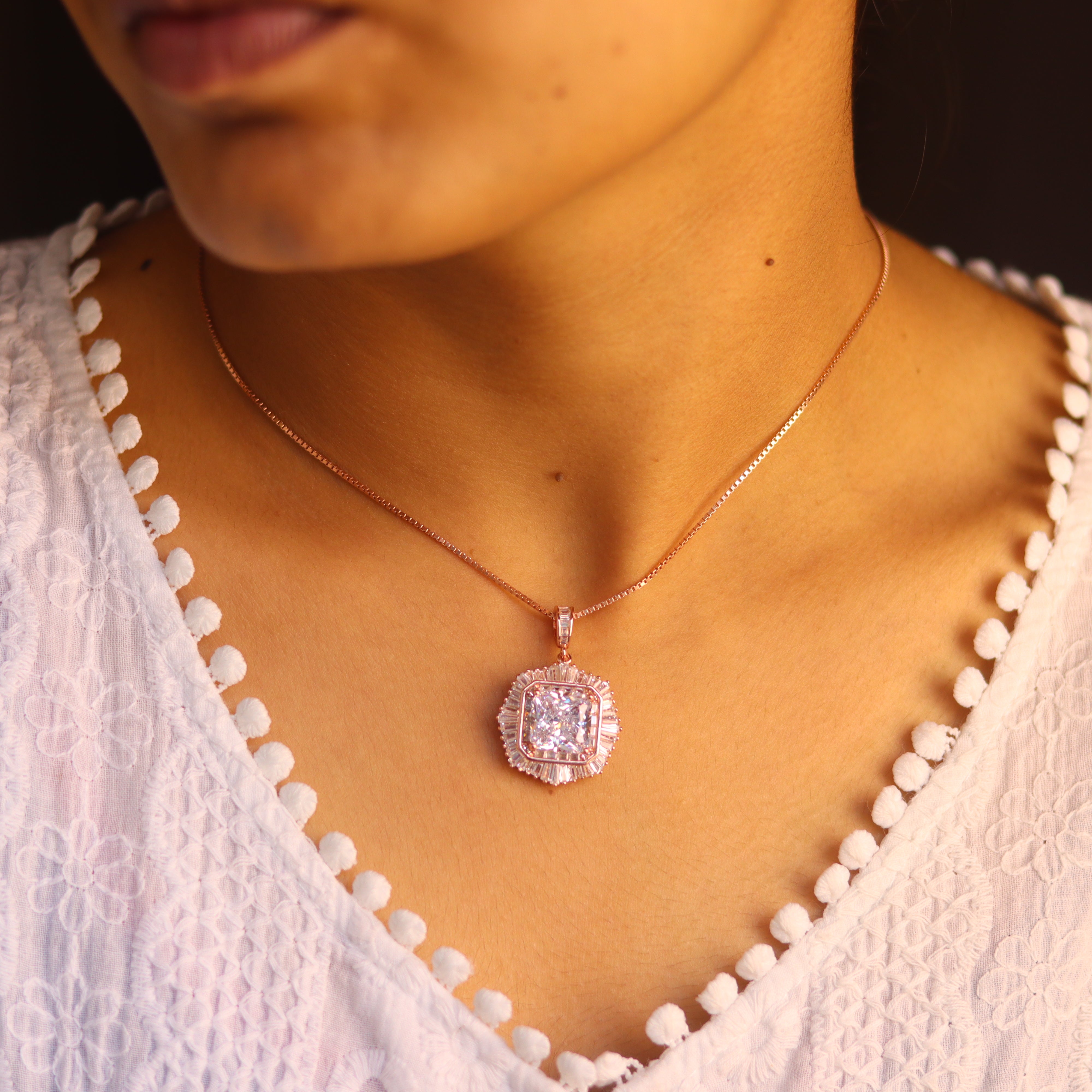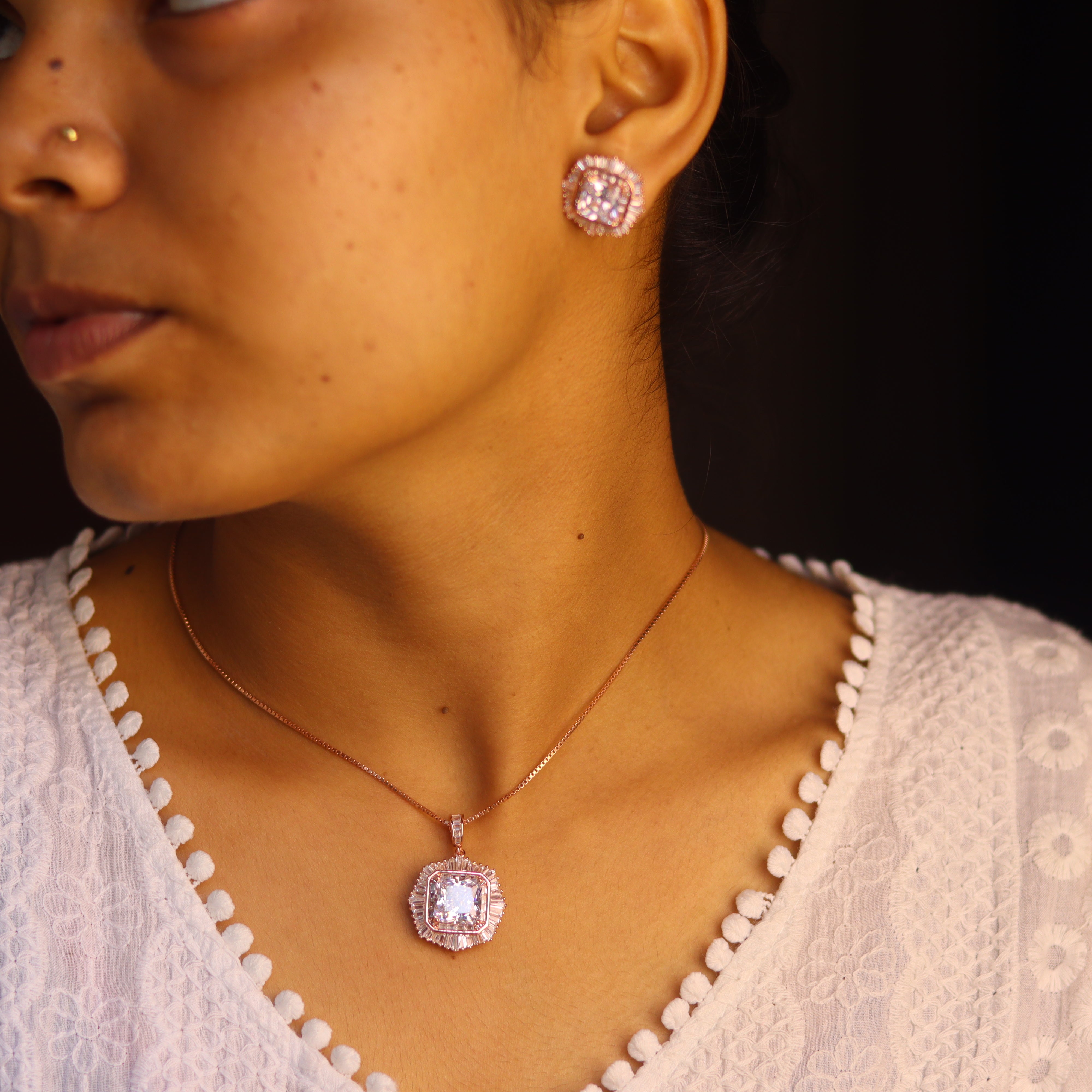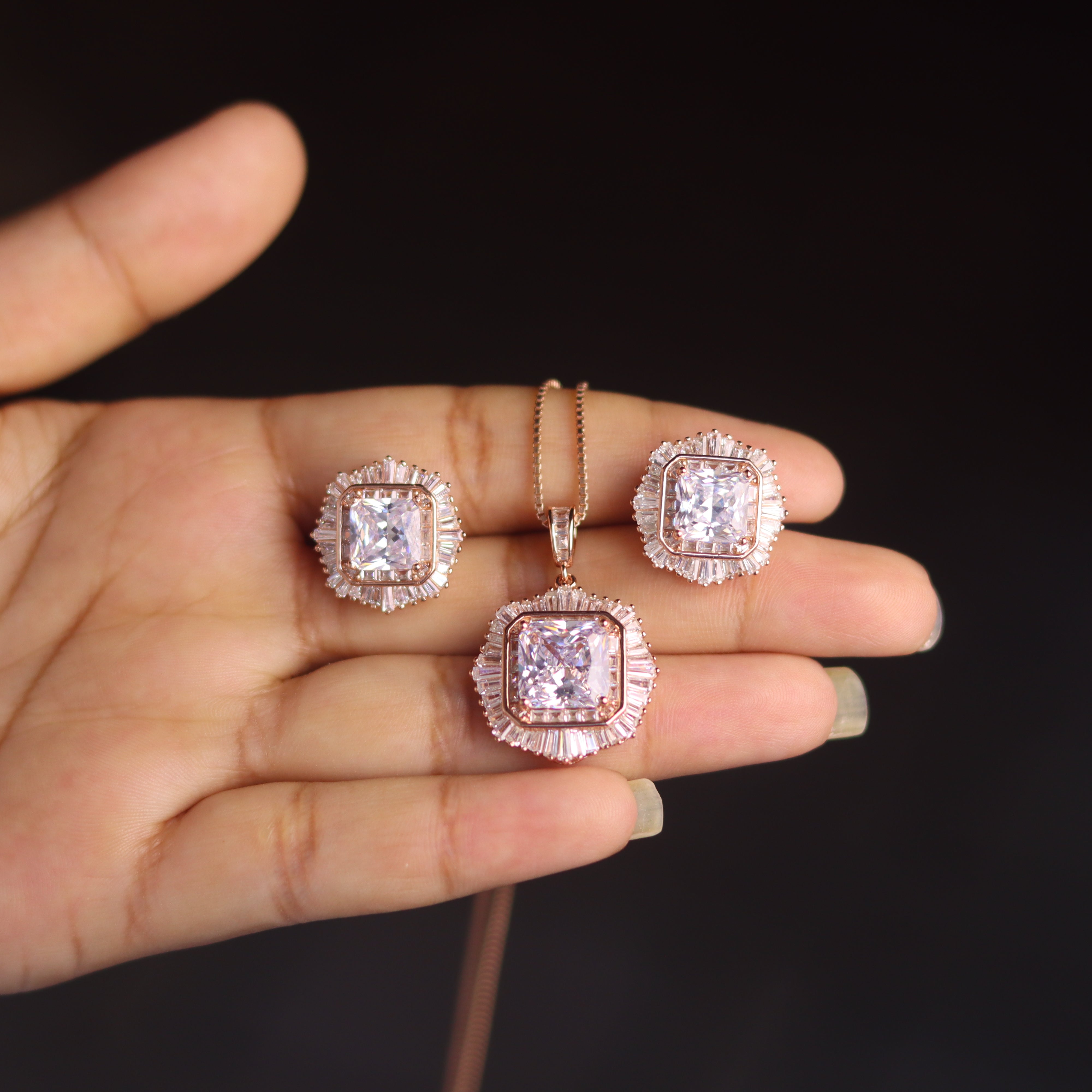 Embrace elegance with the Verona Women's Rose Gold Pendant Set from V ONE JEWELLERY. Crafted from 925 Pure Silver and beautifully plated with luxurious rose gold, this stunning set is designed to add a sophisticated touch to any special occasion. Perfect for celebrations or memorable moments, the Verona set enhances your ensemble with its radiant charm.